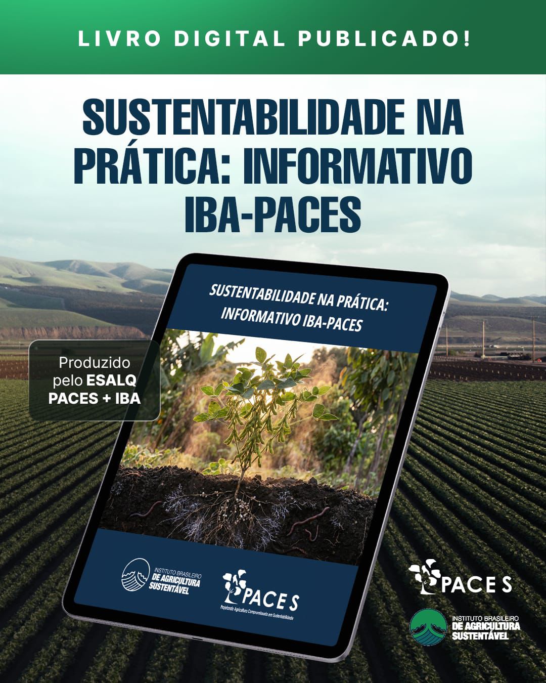 Temos uma grande conquista para compartilhar, está publicado o livro digital “Sustentabilidade na Prática: Informativo IBA-PACES”, desenvolvido pelo grupo ESALQ PACES em parceria com o IBA, dentro do projeto Ciência na Prática.